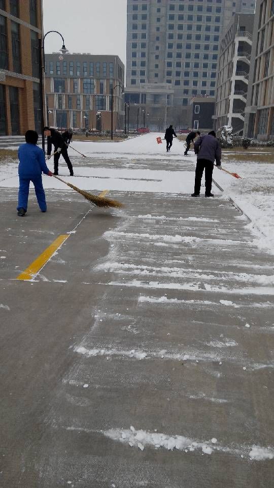 ?2014年2月6日廊坊地區(qū)迎來了第一場(chǎng)雪,至2月7日清晨,厚厚的白雪覆蓋了河北省服務(wù)外包基地。伴隨著凜冽的寒風(fēng),氣溫驟降,積雪深度已達(dá)10厘米以上,為保障園區(qū)業(yè)主正常辦公和出行,廊坊公司迅速組織全體員工進(jìn)行清掃。由于條件的限制,公司配備的除雪工具只有鐵锨和除雪板,加上五六級(jí)的北風(fēng)和零下十度的低溫,使除雪工作更加艱難,雖然員工的手和臉都凍得通紅,然而,這一切絲毫沒有影響員工的熱情和工作效率。