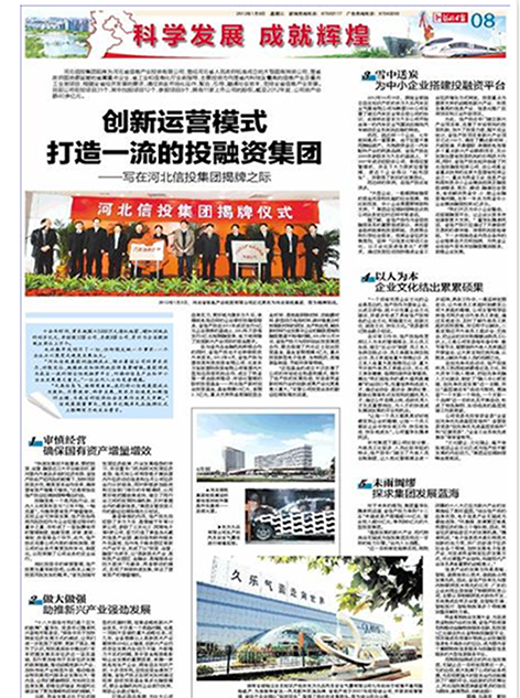 《河北日報》1月8日刊發公司《創新運營模式打造一流的投融資集團》專版專稿