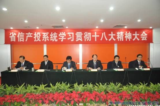 ??? 11月21日,省信產投系統召開學習貫徹黨的十八大精神大會,公司領導班子成員和各部室、駐石控股公司全體員工參加了大會。總經理尉麗峰主持會議,副總經理李玉民、張瑞杰分別傳達了《胡錦濤同志在黨的十八大上的工作報告》和《周杰同志在省國資委系統傳達學習黨的十八大精神視頻會議上的講話》。